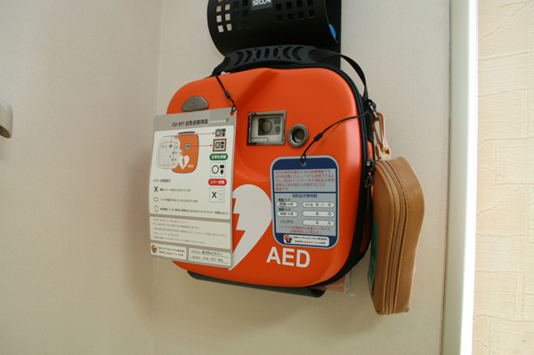 生体機能情報モニターは、歯科治療の安心安全をサポートする機械です。血圧や動脈血酸素飽和度などを高い精度で測定します。AEDAED(自動体外式除細動器)は、心臓が痙攣し血液を流すポンプ機能を失ったときに、電気ショックを与え正常なリズムに戻すための医療機器です。